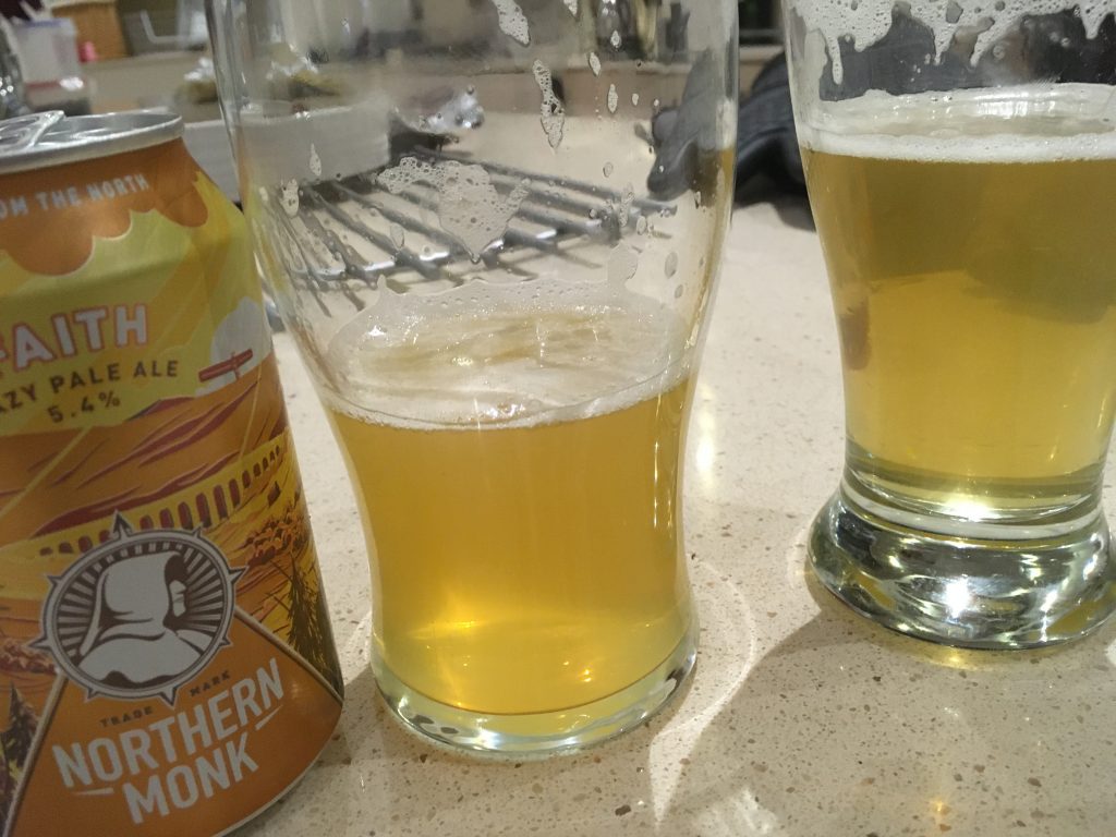 Now this version (the 4th attempt) is very different. I have changed the malt bill to get the colour and haziness correct – previous versions were far too dark. I am using the extra pale version of Maris Otter together with some pale wheat and rolled oats. This version has an EBC of around 8, all the previous versions had an EBC of around 13-15. The Northern Monk website suggests Faith has an EBC of about 6, so I should be a bit closer with this one.