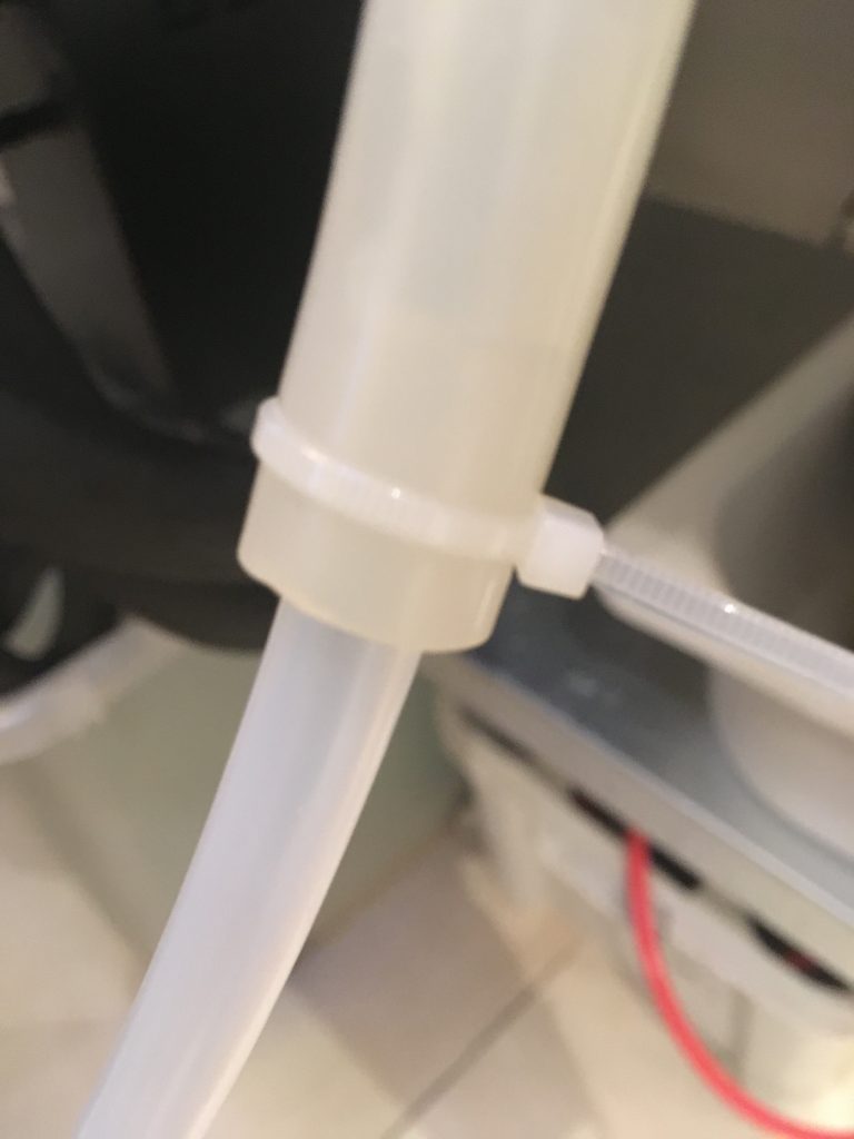 The silicon take off tube on the fermentation vat is attached to the gas line and held in place with a cable tie.