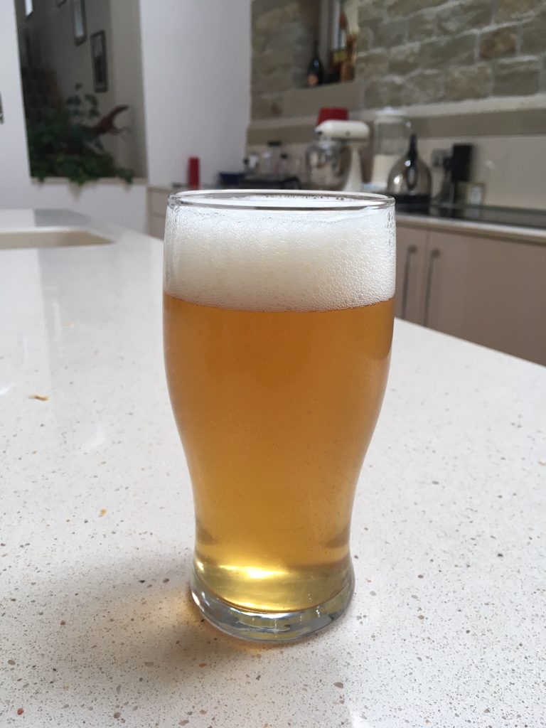 It is a traditional English Bitter based on Golden Promise together with some crystal malt. This gives it a slightly caramel taste. I am using new world hops (Cascade, Columbus and Chinook) for flavour with Cascade as the bittering hop, so it isn’t overly bitter. Fermentis US-05 yeast produces a very clean taste. Bottle conditioned.